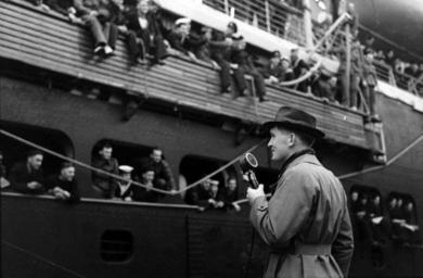Keywords: black and white blackandwhite australian war memorial australianwarmemorial unesco audiovisual heritage recording blackandwhite monochrome black and white ID number: 002268/11 Photographer: Edward ‘Ted' L F Cranstone Place: Melbourne, Australia An ABC journalist records a description of the scene as the troopship Orontes sails from Melbourne. Rights Info: No known copyright restrictions. This photograph is from the Australian War Memorial's collection www.awm.gov.au Persistent URL: www.awm.gov.au/collection/002268/11/ ID number: 002268/11 Photographer: Edward ‘Ted' L F Cranstone Place: Melbourne, Australia An ABC journalist records a description of the scene as the troopship Orontes sails from Melbourne. Rights Info: No known copyright restrictions. This photograph is from the Australian War Memorial's collection www.awm.gov.au Persistent URL: www.awm.gov.au/collection/002268/11/ |