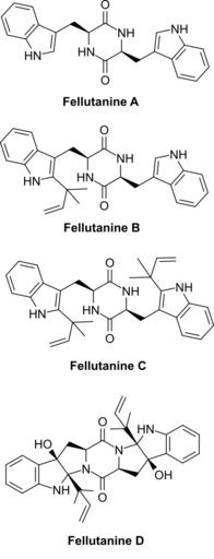 Keywords: Fellutanines A,B,C,D.svg en Fellutanines A B C and D 2016-02-29 own Alandb other versions cc-zero Diketopiperazines Indole alkaloids