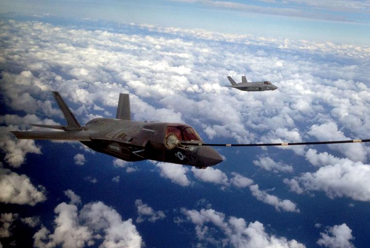 Keywords: Fill 'er Up (8053483584).jpg Two F-35B Joint Strike Fighters conduct the first aerial refueling of its kind with a KC-130J Hercules in the sky above Eglin Air Force Base Fla Oct 2 Previous aerial refueling operations with the F-35 had been conducted with test aircraft It ™s great to start to expand our operational capability in the context of working with the Marine Air-Ground Task Force said Lt Col David Berke who commands the F-35B squadron Marine Fighter Attack Training Squadron 501 at Eglin The KC-130J was from Marine Aerial Refueler Transport Squadron 252 based out of Marine Corps Air Station Cherry Point N C U S Marine Corps photo by Cpl Brian Adam Jones https //www flickr com/photos/marine_corps/8053483584/ Fill 'er Up 2012-10-02 15 48 https //www flickr com/people/40927340 N03 Marines from Arlington VA United States PD-USGov United States Marine Corps Official Page https //flickr com/photos/40927340 N03/8053483584 2016-09-03 23 11 44 United States Government Work Eglin Air Force Base Aircraft of the United States Marine Corps Aerial refueling F-35B Lightning II in flight 168057 aircraft |