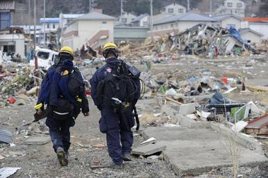 Keywords: Flickr - DVIDSHUB - Operation Tomodachi (Image 2 of 52).jpg Members of CA-TF2 walk through the rubble to their bus after searching for tsunami victims in Ofunato Japan during March 15 2011 Members of the Los Angeles Search and Rescue Team Task Force 2 are responding to the recent national emergency in Japan due to the earthquake while providing needed care rescue techniques and tools 4th Combat Camera Squadron Photo by Tech Sgt Daniel St Pierre Date Taken 03 15 2011 Location OFUNATO IWATE JP Related Photos http //dvidshub net/r/lakbp8 dvidshub net/r/lakbp8 http //www flickr com/photos/dvids/5558156401/ Operation Tomodachi Image 2 of 52 2011-03-25 09 30 http //www flickr com/people/28650594 N03 DVIDSHUB 39 093929 141 76947 source Flickr PD-USGov Photographs by Defense Video and Imagery Distribution System Operation Tomodachi in March 2011 2011 TÅhoku earthquake damage and effects in Ofunato Iwate |