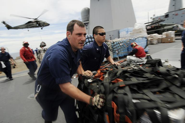 Keywords: Flickr - Official U.S. Navy Imagery - USS Blue Ridge Sailors move supplies to support relief efforts in Japan following earthquake..jpg SOUTH CHINA SEA March 11 2011 Hull Technician 2nd Class Seneca Jernigan left and Yeoman 3rd Class Steven Tai move pallets of humanitarian assistance supplies across the flight deck of the U S 7th Fleet command ship USS Blue Ridge LCC 19 during an underway replenishment with the Military Sealift Command fleet replenishment oiler USNS Rappahannock T-AO 204 not pictured Blue Ridge is ensuring the crew is ready if directed to assist with earthquake and tsunami relief operations in Japan U S Navy photo by Mass Communication Specialist 2nd Class Aaron M Pineda /Released http //www flickr com/photos/usnavy/5523449678/ USS Blue Ridge Sailors move supplies to support relief efforts in Japan following earthquake 2011-03-11 15 08 http //www flickr com/people/56594044 N06 Official Navy Page from United States of America MC2 Aaron Pineda/U S Navy Attribution License IPTC Source Navy Visual News Service 10 42057 111 692146 source Flickr PD-USGov-Military-Navy Official U S Navy Imagery http //flickr com/photos/56594044 N06/5523449678 2012-11-15 15 57 36 cc-by-2 0 Images from United States Navy to check |