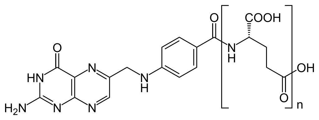 Keywords: Folic acid nglu.svg en structure of folic acid with unknown number of glutamic acid 2012-08-10 own Ayacop cc-zero Folic acid