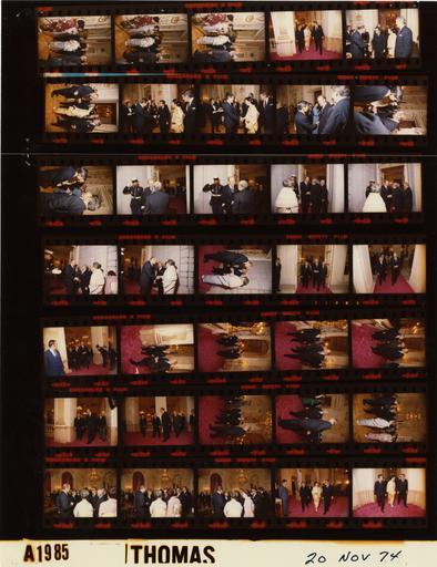 Keywords: Ford A1985 NLGRF photo contact sheet (1974-11-20)(Gerald Ford Library).jpg White House Photographic Office WHPO is housed at the Gerald R Ford Presidential Library a branch of the National Archives and Records Administration NARA <br/><br/> This file is a 200 dpi photo contact sheet having images from roll of film A1985 of the August 9 1974 - January 20 1977 Gerald R Ford White House Photographic Office Series A0001-A9999 and B0001-B2886 photographs <br/><br/> The date on the photo contact sheet is the date the roll of film was processed not necessarily the date the photographs were taken See table below for additional details 1974-11-20 Gerald R Ford Presidential Library Image http //www fordlibrarymuseum gov/library/whphotos/A1985_NLGRF jpg A1985_NLGRF jpg from http //www fordlibrarymuseum gov/library/whphotos/19741120whpo pdf White House Photographs November 20 1974 of the http //www fordlibrarymuseum gov/Library/whphotos/whpo asp White House Photographic Collection page White House Photographic Office WHPO - Thomas PD-USGov Institution Institution Gerald R Ford Presidential Library Table wikitable sortable + Photo contact sheet A1985 U S President Ford Administration Gerald R Ford Library Frame s Tone Subject proper Subject generic Names Geographic Location Photographer Date - 3-5 Color Trip to Japan - 1st Visit to Japan by Sitting U S President - Reciprocal Reception - Local Time greeting handshaking GRF Japanese Wives Tokyo Japan Akasaka Palace Thomas 1974-11-20 - 6 Color Trip to Japan - 1st Visit to Japan by Sitting U S President - Reciprocal Reception - Crown Prince and Princess - Local Time entering room Amb Catto; Prince Akihito Princess Mikasa Tokyo Japan Akasaka Palace Thomas 1974-11-20 - 7-8 Color Trip to Japan - 1st Visit to Japan by Sitting U S President - Reciprocal Reception - Crown Prince and Princess; U S Ambassador to Japan - Local Time greeting handshaking Amb Catto; Prince Akihito Princess Mikasa Amb James Hodgson Tokyo Japan Akasaka Palace Thomas 1974-11-20 - 9-10 Color Trip to Japan - 1st Visit to Japan by Sitting U S President - Reciprocal Reception - Crown Prince and Princess - Local Time greeting handshaking Amb Catto; Prince Akihito Princess Mikasa Rumsfeld Tokyo Japan Akasaka Palace Thomas 1974-11-20 - 11-13 Color Trip to Japan - 1st Visit to Japan by Sitting U S President - Reciprocal Reception - Crown Prince and Princess - Local Time greeting handshaking GRF Amb Catto; Prince Akihito Princess Mikasa Tokyo Japan Akasaka Palace Thomas 1974-11-20 - 14-15 Color Trip to Japan - 1st Visit to Japan by Sitting U S President - Reciprocal Reception - Arrival of Emperor of Japan - Local Time greeting handshaking guard saluting in background GRF Hirohito; Marine Guard Tokyo Japan Akasaka Palace Thomas 1974-11-20 - 16-20 Color Trip to Japan - 1st Visit to Japan by Sitting U S President - Reciprocal Reception - Emperor and Empress of Japan - Local Time greeting handshaking guard saluting in background GRF Hirohito Empress Nagako; Marine Guard Tokyo Japan Akasaka Palace Thomas 1974-11-20 - 21-31 Color Trip to Japan - 1st Visit to Japan by Sitting U S President - Reciprocal Reception - Emperor of Japan - Local Time walking through palace talking GRF Hirohito Tokyo Japan Akasaka Palace Thomas 1974-11-20 - 32-35 Color Trip to Japan - 1st Visit to Japan by Sitting U S President - Reciprocal Reception - Emperor and Empress; Crown Prince and Princess of Japan - Local Time standing talking - all not in every frame GRF Hirohito Empress Nagako; Prince Akihito Princess Mikasa Kissinger Others Tokyo Japan Akasaka Palace Thomas 1974-11-20 - 36-37 Color Trip to Japan - 1st Visit to Japan by Sitting U S President - Reciprocal Reception - Crown Prince and Princess - Local Time walking through palace talking Prince Akihito Princess Mikasa Kissinger Others Tokyo Japan Akasaka Palace Thomas 1974-11-20 Gerald R Ford Presidential Library and Museum-cooperation PD-USGov Contact sheets by the Ford White House November 1974 |