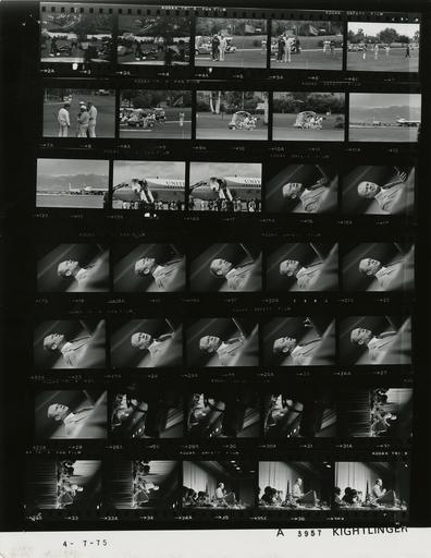 Keywords: Ford A3957 NLGRF photo contact sheet (1975-04-06)(Gerald Ford Library).jpg White House Photographic Office WHPO is housed at the Gerald R Ford Presidential Library a branch of the National Archives and Records Administration NARA <br/><br/> This file is a 200 dpi photo contact sheet having images from roll of film A3957 of the August 9 1974 - January 20 1977 Gerald R Ford White House Photographic Office Series A0001-A9999 and B0001-B2886 photographs <br/><br/> The date on the photo contact sheet is the date the roll of film was processed not necessarily the date the photographs were taken See table below for additional details 1975-04-06 Gerald R Ford Presidential Library Image http //www fordlibrarymuseum gov/library/whphotos/A3957_NLGRF jpg A3957_NLGRF jpg from http //www fordlibrarymuseum gov/library/whphotos/19750406whpo pdf White House Photographs April 6 1975 of the http //www fordlibrarymuseum gov/Library/whphotos/whpo asp White House Photographic Collection page White House Photographic Office WHPO - Kightlinger PD-USGov Institution Institution Gerald R Ford Presidential Library Table wikitable sortable + Photo contact sheet A3957 U S President Ford Administration Gerald R Ford Library Frame s Tone Subject proper Subject generic Names Geographic Location Photographer Date - 3-4 BW Vacation Trip to California -Rancho Mirage California sunbathing; silhouette Unidentified Woman and Man Rancho Mirage CA Outside Presidential Vacation Residence Kightlinger 1975-04-06 - 5-11 BW Vacation Trip to California -Playing Round of Golf - La Quinta California on golf course; various activities all not in every frame GRF Parma Red Blaik Frank Capra; Other La Quinta CA La Quinta Country Club Kightlinger 1975-04-06 - 16-28 BW Trip to Las Vegas Nevada - Address to National Association of Broadcasters Annual Convention at kectern speaking gesturing; close up; teken from low vantage point GRF Las Vegas NV Las Vegas Hilton Hotel - Reception Room Kightlinger 1975-04-07 - 14-15 BW Arrival in Las Vegas Nevada GRF and BF walking down steps from Air Force One waving GRF Betty Ford Others Las Vegas NV McCarran Field Kightlinger 1975-04-07 - 29-37 BW Trip to Las Vegas Nevada - Address to National Association of Broadcasters Annual Convention GRF at lectern speaking others seated' TV camera silhouetted in foreground in frames 29-31 GRF Betty Ford Platform Guests Las Vegas NV Las Vegas Hilton Hotel - Reception Room Kightlinger 1975-04-07 - 12-13 BW Vacation Trip to California -Prior to Departure for Las Vegas Nevada - Palm Springs California Air Force One taxiing Palm Springs CA Palm Springs Municipal Airport Kightlinger 1975-04-07 Gerald R Ford Presidential Library and Museum-cooperation PD-USGov Contact sheets by the Ford White House April 1975 La Quinta California Rancho Mirage California Las Vegas |