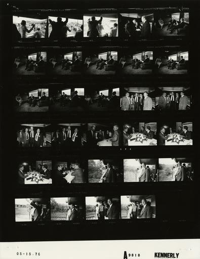 Keywords: Ford A9818 NLGRF photo contact sheet (1976-05-15)(Gerald Ford Library).jpg White House Photographic Office WHPO is housed at the Gerald R Ford Presidential Library a branch of the National Archives and Records Administration NARA <br/><br/> This file is a 200 dpi photo contact sheet having images from roll of film A9818 of the August 9 1974 - January 20 1977 Gerald R Ford White House Photographic Office Series A0001-A9999 and B0001-B2886 photographs <br/><br/> The date on the photo contact sheet is the date the roll of film was processed not necessarily the date the photographs were taken See table below for additional details 1976-05-15 Gerald R Ford Presidential Library Image http //www fordlibrarymuseum gov/library/whphotos/A9818_NLGRF jpg A9818_NLGRF jpg from http //www fordlibrarymuseum gov/library/whphotos/19760515whpo pdf White House Photographs May 15 1976 of the http //www fordlibrarymuseum gov/Library/whphotos/whpo asp White House Photographic Collection page White House Photographic Office WHPO <br/> Creator David Hume Kennerly PD-USGov Institution Institution Gerald R Ford Presidential Library Table wikitable sortable + Photo contact sheet A9818 U S President Ford Administration Gerald R Ford Library Frame s Tone Subject proper Subject generic Names Geographic Location Photographer Date - 3-5 BW Primary Campaign Whistle-Stop Tour of Michigan-Stop Tour of Michigan; Lansing Stopover standing on caboose waving to crowd backs to camera GRF Betty Ford Crowd Lukash Lansing MI North Lansing Train Station Kennerly 1976-05-15 - 6-15 BW Primary Campaign Whistle-Stop Tour of Michigan; Interview with CBS News Anchor Walter Cronkite seated on train talking GRF Walter Cronkite Betty Ford Enroute Lansing to Battle Creek MI Aboard train Kennerly 1976-05-15 - 16-20 BW Primary Campaign Whistle-Stop Tour of Michigan; Photo Op with Editorial Board of Panax Corporation standing posing; all not in every frame GRF Unidentified Men Enroute Lansing to Battle Creek MI Aboard Train Kennerly 1976-05-15 - 21-24 BW Primary Campaign Whistle-Stop Tour of Michigan-Media Interview aboard train; UPI correspondent Brunston WKOZ-TV CBS Kalamazoo Douglas seated at table talking GRF Michael Brunston Fred Douglas Unidentified Man Enroute Lansing to Battle Creek MI Aboard Train Kennerly 1976-05-15 - 25-31 BW Primary Campaign Whistle-Stop Tour of Michigan-Battle Creek or Kalamazoo GRF standing on caboose at microphone; others in background; Cavaney and O'Donnell wearing conductor's caps GRF Cheney Don Penny Schneider Cavaney O'Donnell Battle Creek or Kalamazoo MI Train Station Kennerly 1976-05-15 Gerald R Ford Presidential Library and Museum-cooperation PD-USGov Contact sheets by the Ford White House May 1976 Photographs by David Hume Kennerly from 1976 Walter Cronkite |