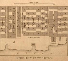 Keywords: Foreign factories, 1840.jpg Map of the Thirteen Factories of Guangzhou in the Qing Empire in 1840 prior to their destruction by fire the next year during the First Opium War <br><br> Imperial refers to the Austrian Empire 1840 http //ocw mit edu/ans7870/21f/21f 027/rise_fall_canton_03/canton html MIT Published by Ja<sup><small><small>s</small></small></sup> Wyld Geographer to the Queen Charing Cross East London Enterered at Stationer's Hall <gallery> File British map of Canton 1840 jpg Full image File Plan of Canton Factories jpg Factories 1856 </gallery> PD-old ImageNote 1 1307 1185 727 67 3362 1366 2 FOREIGN FACTORIES ImageNoteEnd 1 ImageNote 2 1009 1063 1315 97 3362 1366 2 Pearl River ImageNoteEnd 2 ImageNote 3 996 185 97 630 3362 1366 2 Danish I-VI ImageNoteEnd 3 ImageNote 4 1706 185 97 593 3362 1366 2 Swedish I-IV ImageNoteEnd 4 ImageNote 5 1799 185 84 593 3362 1366 2 Old English I-VI ImageNoteEnd 5 ImageNote 6 1967 185 172 609 3362 1366 2 British I-VI ImageNoteEnd 6 ImageNote 7 2131 185 113 614 3362 1366 2 Dutch I-VI ImageNoteEnd 7 ImageNote 8 1446 185 76 588 3362 1366 2 American I-IV ImageNoteEnd 8 ImageNote 9 1231 181 80 647 3362 1366 2 French I-VIII ImageNoteEnd 9 ImageNote 10 1164 181 71 647 3362 1366 2 Spanish I-IV ImageNoteEnd 10 ImageNote 11 290 92 441 67 3362 1366 2 REFERENCES ImageNoteEnd 11 ImageNote 12 2610 92 433 88 3362 1366 2 REFERENCES ImageNoteEnd 12 ImageNote 13 1100 1452 519 77 2694 2434 2 Respondentia Walk ImageNoteEnd 13 ImageNote 14 2000 1700 219 69 2694 2434 2 Garden ImageNoteEnd 14 ImageNote 15 491 1610 130 126 2694 2434 2 Flag<br>Staff ImageNoteEnd 15 ImageNote 16 820 252 45 1103 2694 2434 2 Old China Street ImageNoteEnd 16 ImageNote 17 771 252 61 1103 2694 2434 2 Chinese Shops ImageNoteEnd 17 ImageNote 18 292 252 45 1282 2694 2434 2 Chinese Shops ImageNoteEnd 18 ImageNote 19 247 256 57 1278 2694 2434 2 New China Street ImageNoteEnd 19 ImageNote 20 2483 260 207 1217 2694 2434 2 Creek I-IV or VI ImageNoteEnd 20 ImageNote 21 2280 260 207 1209 2694 2434 2 Dutch I-VI ImageNoteEnd 21 ImageNote 22 1939 264 341 1205 2694 2434 2 British I-VI ImageNoteEnd 22 ImageNote 23 864 252 49 1107 2694 2434 2 Chinese Shops ImageNoteEnd 23 ImageNote 24 203 252 45 1282 2694 2434 2 Chinese Shops ImageNoteEnd 24 ImageNote 25 4 239 215 1286 2694 2434 2 Danish I-VI ImageNoteEnd 25 ImageNote 26 341 256 122 1270 2694 2434 2 Spanish I-IV ImageNoteEnd 26 ImageNote 27 467 247 166 1282 2694 2434 2 French I-VIII ImageNoteEnd 27 ImageNote 28 909 256 138 1160 2694 2434 2 American I-IV ImageNoteEnd 28 ImageNote 29 1225 247 203 1172 2694 2434 2 Imperial I-VI <br>Austrian ImageNoteEnd 29 ImageNote 30 633 2057 1473 162 2694 2434 2 PEARL RIVER ImageNoteEnd 30 ImageNote 31 661 247 150 1225 2694 2434 2 A Hong Merchant's<br>Mingqua ImageNoteEnd 31 ImageNote 32 1043 260 195 1160 2694 2434 2 Paou shun I-VI ImageNoteEnd 32 ImageNote 33 1424 252 191 1172 2694 2434 2 Swedish I-IV ImageNoteEnd 33 ImageNote 34 1607 252 162 1176 2694 2434 2 Old English I-VI ImageNoteEnd 34 ImageNote 35 1242 1716 158 114 2694 2434 2 Hoppo<br> Superintendant of Customs ImageNoteEnd 35 ImageNote 36 2321 1460 114 187 2694 2434 2 Verandah ImageNoteEnd 36 ImageNote 37 2004 1460 215 211 2694 2434 2 Verandah ImageNoteEnd 37 ImageNote 38 2605 1497 73 162 2694 2434 2 Hoppo<br> Superintendant of Customs ImageNoteEnd 38 ImageNote 39 1911 256 32 1180 2694 2434 2 Hog Lane ImageNoteEnd 39 ImageNote 40 1878 759 37 150 2694 2434 2 Hospital ImageNoteEnd 40 ImageNote 41 1773 256 110 1172 2694 2434 2 Fung tae I-V ImageNoteEnd 41 ImageNote 42 1883 901 32 398 2694 2434 2 Chinese shops ImageNoteEnd 42 ImageNote 43 1878 256 32 499 2694 2434 2 Chinese shops ImageNoteEnd 43 ImageNote 44 1152 57 385 65 2694 2434 2 Scale of 200 Yards ImageNoteEnd 44 ImageNote 45 536 150 57 49 2694 2434 2 0 ImageNoteEnd 45 ImageNote 46 605 150 53 45 2694 2434 2 10 ImageNoteEnd 46 ImageNote 47 686 158 57 37 2694 2434 2 20 ImageNoteEnd 47 ImageNote 48 759 138 69 61 2694 2434 2 30 ImageNoteEnd 48 ImageNote 49 836 150 65 57 2694 2434 2 40 ImageNoteEnd 49 ImageNote 50 933 154 57 53 2694 2434 2 50 ImageNoteEnd 50 ImageNote 51 1315 150 77 49 2694 2434 2 100 ImageNoteEnd 51 ImageNote 52 2094 146 101 57 2694 2434 2 200 ImageNoteEnd 52 ImageNote 53 633 2251 1469 138 2694 2434 2 FOREIGN FACTORIES ImageNoteEnd 53 ImageNote 54 8 239 32 1302 2694 2434 2 Pwanting Street ImageNoteEnd 54 ImageNote 55 4 183 2686 77 2694 2434 2 Thirteen Factories Street ImageNoteEnd 55 ImageNote 56 1862 1919 126 114 2694 2434 2 Jackass Point ImageNoteEnd 56 ImageNote 57 2662 8 28 1550 2694 2434 2 the creek ImageNoteEnd 57 ImageNote 58 2158 1205 77 69 2694 2434 2 Clerk ImageNoteEnd 58 Thirteen Factories Old maps of Guangzhou 1840 in China Guangzhou in the 1840s Puankhequa James Wyld |