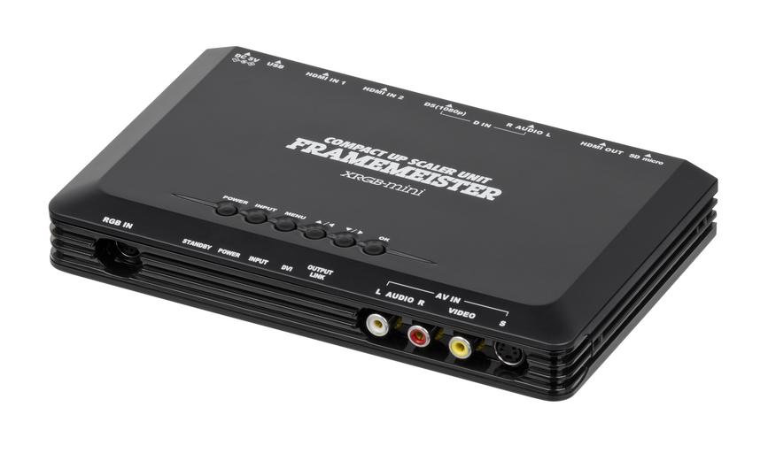 Keywords: Framemeister-XRGB-mini-Front.jpg en The XRGB-mini Framemeister made by Micomsoft This is a Japanese product used to upscale signals from older input types and output a clean and lag-free image through HDMI As modern TVs lack older input types and have generally poor and laggy built-in upscaling this is a niche device to address that It is primarily used by video game enthusiasts looking to achieve a high-quality image output from their older video game consoles especially when used in conjunction with RGB via SCART and JP-21 cables Though Japanese the device can be used on American TVs due to the common NTSC standard and negligible difference in wall output voltages own Evan-Amos 2016-05-20 User Evan-Amos/EABanner Electronic devices on white background Evan-Amos Taken with Nikon D7100 Video processing |