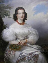 Keywords: François-Joseph Kinsoen - Portrait of a German Princess.JPG Artwork Creator François Joseph Kinson title Portrait of a German Princess ~1828 Oil on canvas Institution Bowes Museum own Own photo Public domain PD-old-100 other versions François Joseph Kinson Paintings in the Bowes Museum 19th-century portrait paintings of unidentified women 1828c 1828 oil on canvas paintings in the United Kingdom Portrait 1828 portrait paintings 19th-century oil portraits of sitting women at three-quarter length 1828c 19th-century portrait paintings in the United Kingdom 1828c Females with white dresses in art 1828c Portrait paintings of women holding feather fans Portrait paintings of women of Germany unidentified Princesses of Germany |
