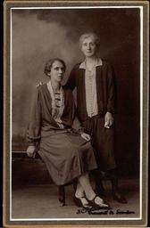 Keywords: Fred C Palmer 106.jpg Portrait photo of two women at Swindon Wiltshire England in the 1920s or 30s From a postcard deposited at Swindon Record Office and scanned and uploaded by them to Flickr The photographer was Fred C Palmer of Tower Studio Herne Bay Kent ca 1905-1916 and of 6 Cromwell Street Swindon ca 1920-1936 He is believed to have died 1936-1939 Border The remaining border of this image is important for researchers of this photographer Some photographers trimmed their images more than others Palmer took his own photos developed them in-house onto photographic paper and trimmed them himself It is worth adding that during hand-developing the border is actively masked with equipment which crops the picture This cropping is part of the design and is one of the reasons why the quality of Palmer's work is so interesting and why there is an article and category for him on English Wiki Researchers need to see exactly where the edge of the card is because the edge of the card makes a frame for the picture and we need to see what was intended by the photographer In the case of this image a little black background has been left to show the edges of the card for this reason Thank you for taking the time to read this http //www flickr com/photos/swindonlocal/3884918203/ 1920-1930s Fred C Palmer died 1936-1939 out of copyright PD-art-70 Fred C Palmer of Swindon Portraits of women |