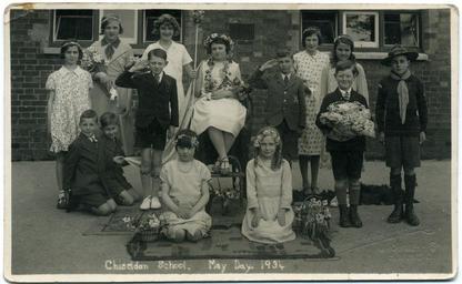 Keywords: Fred C Palmer Chiseldon School 1934 001.jpg 1934 postcard of Chiseldon School near Swindon Wiltshire England showing a group of school children dressed for May Day celebrations It is one of a set of seven postcards from the 1930s showing children from the same school on May Day There is a May Queen; also Brownies Cubs Scouts and Girl Guides The photographer was Fred C Palmer of Tower Studio Herne Bay Kent ca 1905-1920 and of 6 Cromwell Street Swindon ca 1920-1936 He is believed to have died 1936-1939 This print has darkened with age but it would be inappropriate to adjust the brightness because detail e g on white dresses would be lost Border The remaining border of this image is important for researchers of this photographer Some photographers trimmed their images more than others and Palmer has a reputation for producing smaller postcards than other early 20th century UK photographers He took his own photos developed them in-house onto postcard-backed photographic paper and trimmed them himself It is worth adding that during hand-developing the border is actively masked with equipment which both crops the picture and causes the white frame or border to appear on the paper This frame is part of the design and is one of the reasons why the quality of Palmer's work is so interesting and why there is an article and category for him on English Wiki Researchers need to see exactly where the edge of the postcard is Thank you for taking the time to read this Scan of original postcard in my possession Marked 1934 Fred C Palmer died 1936-1939 out of copyright File Fred C Palmer Chiseldon School 1930s 001 jpg <br/> File Fred C Palmer Chiseldon School 1933 001 jpg <br/> File Fred C Palmer Chiseldon School 1933 002 jpg <br/> File Fred C Palmer Chiseldon School 1933 003 jpg <br/> File Fred C Palmer Chiseldon School 1934 002 jpg <br/> File Fred C Palmer Chisledon School 1934 003 jpg PD-art-70 Fred C Palmer of Swindon Chiseldon People of Wiltshire School children of the United Kingdom 1st of May in the United Kingdom People in 1934 |