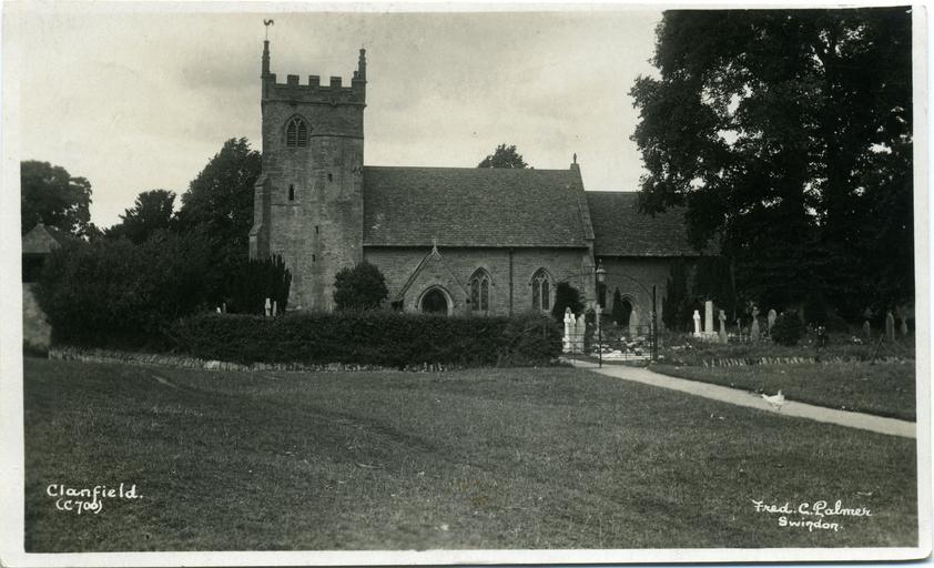 Keywords: Fred C Palmer Clanfield church.jpg Postcard of the Church of England parish church of St Stephen at Clanfield Oxfordshire England The photographer was Fred C Palmer of Tower Studio Herne Bay Kent ca 1905-16 and of 6 Cromwell Street Swindon ca 1920-36 He died in 1941 The postcard is postmarked 1930 ;Points of interest The graveyard contains new white headstones Editing This is an unedited scan of an historical print that has darkened with age but it would be inappropriate to adjust the brightness because detail would be lost in lighter or darker areas It is suggested that edits of this image be uploaded as separate files Border The remaining border of this image is important for researchers of this photographer Some photographers trimmed their images more than others and Palmer has a reputation for producing smaller postcards than other early 20th century UK photographers He took his own photos developed them in-house onto postcard-backed photographic paper and trimmed them himself It is worth adding that during hand-developing the border is actively masked with equipment which both crops the picture and causes the white frame or border to appear on the paper This frame is part of the design and is one of the reasons why the quality of Palmer's work is so interesting and why there is an article and category for him on English Wiki Researchers need to see exactly where the edge of the postcard is Thank you for taking the time to read this Scan of original postcard in my possession 1930 Fred C Palmer died 1941 out of copyright PD-art-70 St Stephen's Church Clanfield Churchyards in Oxfordshire Clanfield Fred C Palmer of Swindon Postcards of Oxfordshire |