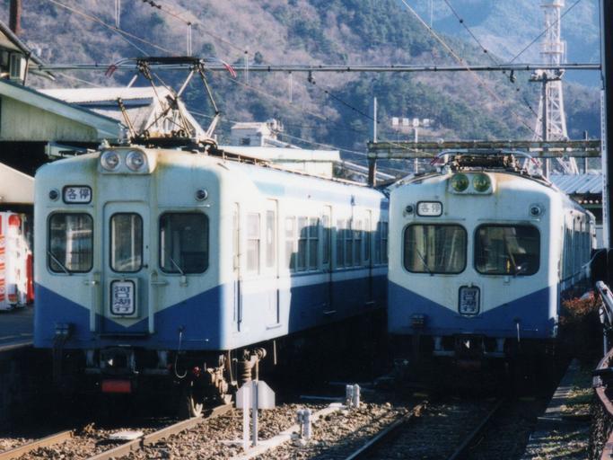 Keywords: Fujikyu-5700-2200.jpg Fujikyuko Co EMU type 5700 Right from Odakyu 2200 Left from Odakyu 2220 at Otsuki Sta Photo by Cassiopeia_sweet 1995-03-12 Cassiopeia_sweet 1995 in rail transport in Japan Fujikyu 5700 series