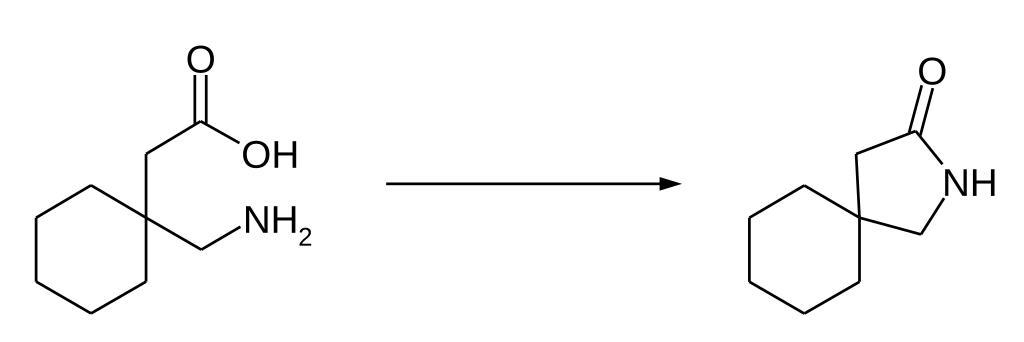 Keywords: Gabapentin Lactamisierung.svg en Gabapentine - intramelecular lactamization de Gabapentin - intramolekulare Lactamisierung own Steffen 962 2011-05-28 PD-chem Cc-zero Gabapentin