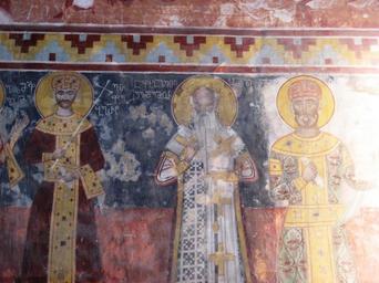Keywords: Gelati fresco 02.JPG en A fresco from the Gelati Monastery Georgia ka გელათის ღვთისმშ ბლის ტაძრის ჩრდილ ეთ კედლის პირველ რეგისტრზე გამ სახულია ისტ რიული პირები ქტიტ რები მეფეთმეფე დავით მე თხე აღმაშე ებელი რ მელსაც მარცხე ა ხელში უჭირავს გელათის ტაძრის მ დელი მარჯვე აში - სიგელი მის თავზე გამ სახულია ღვთის ხელი რ მელიც დავითს აკურთხებს რ გ რც ტაძრის აღმშე ებელს მის გვერდით გამ სახულია მე-16 საუკუ ის დასავლეთ საქართველ ს კათალიკ სი ევდემ ჩხეტიძე მათ გვერდით არია იმერეთის მეფე ბაგრატ მე-3 1510-1565 დედ ფალი ელე ე ბაგრატის შვილი - შემდგ მში იმერთა მეფე გი რგი მე-2 1565-1583 მისი მეუღლე - დედ ფალი რუსუდა ი და მათი შვილი - ბაგრატი რ მელიც ადრეულ ასაკში გარდაიცვალა 16th century 2008 photo http //lemill net/content/webpages/10d210d410da10d010d710d810e1-10d910e310da10e210e310e010e310da10d8-10eb10d410d210da10d410d110d8/view LeMill author Custom license marker 2013 11 24 PD-old-100 Gelati Monastery Uploaded with UploadWizard Bagrat III of Imereti David IV of Georgia Asomtavruli frescos |