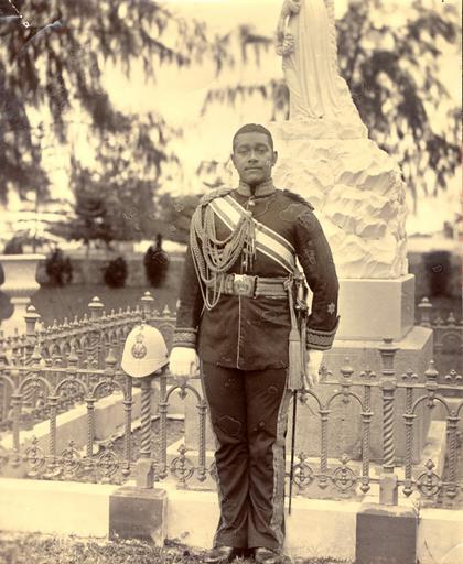Keywords: George Tupou II in uniform (British Museum).jpg en Portrait of King George Tupou II King of Tonga Photograph black and white ; King George Jabou II former King of Tonga; wearing costume and standing at the side of a monument his helmet is resting on the metal rails which surrounds the monument; Tonga http //www britishmuseum org/research/search_the_collection_database/search_object_details aspx objectid 1595840 partid 1 searchText Tupou fromADBC ad toADBC ad numpages 10 orig 2fresearch 2fsearch_the_collection_database aspx currentPage 1 British Museum circa 1885 1900 author PD-old George Tupou II |