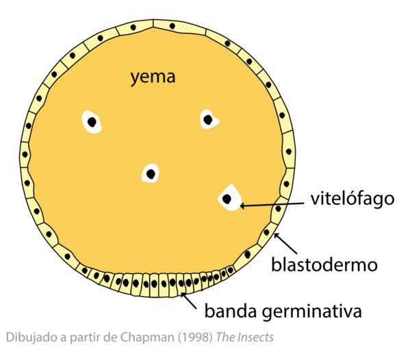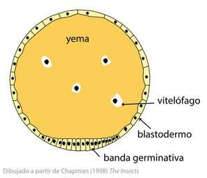 Keywords: Germ band blastoderm vitellophagous yolk in an insect egg.svg es Diagrama de un huevo de insecto Corte longitudinal mostrando la formación de la banda germinativa en el blastodermo la yema y vitelófagos Dibujado a partir de Chapman 1998 The Insects 2013-06-23 00 19 24 own RoRo cc-zero Uploaded with UploadWizard Insect egg illustrations |