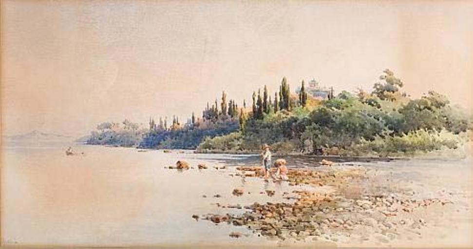 Keywords: Giallinas (11).jpg ικροί ψαράδες στην Κέρκυρα υδατογραφία σε χαρτί 40 x 74 εκ http //www eikastikon gr/zografiki/gialinas html Creator Angelos Giallinas Reproduction of a painting that is in the public domain because of its age PD-old-auto 1939 Angelos Giallinas Historical images of Corfu |