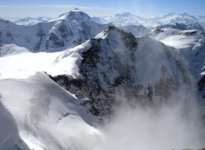 Keywords: Gletscherhorn and Aletschhorn.jpg en Gletscherhorn foreground and Aletschhorn background Bernese Alps Own T Kennedy 2008-09-12 Aletschhorn Bernese Alps Snow in Switzerland