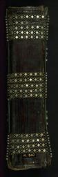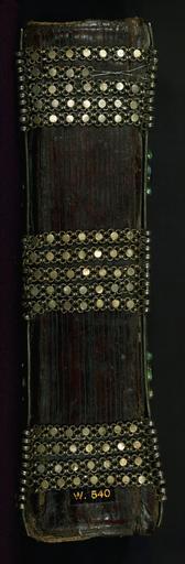 Keywords: gospels gospel book armenian codex illumination illustration manuscript miniature treasure binding walters art museum colophon original ornament armenia turkey 15th century scripture indoor Upper and lower boards made of wood and covered with goatskin, with a rectangular goatskin flap attached to the lower board to protect the fore-edge; two silver plaques have been attached to the upper and lower boards and are joined across the spine through use of 3 sets of 5 silver chains; upper-board silver plaque depicts the Adoration of the Magi in a central, rectangular field, with the figures and decorative elements in repoussé and gilded, with carefully incised details and blue, green, and yellow enamel employed for spatial and decorative effects; outer border is filled with grape-cluster motifs within a green-enamel background and semi-precious gems in the shape of rosettes and crosses; lower-board silver plaque incorporates the same decorative elements and design as the upper-board, but the central scene depicts the Ascension of Christ, with the heavenly background filled in with a marbled white enamel and the earthly background below in blue; inner boards lined with blue linen. This manuscript was executed in 1475 by a scribe identified as Aristakes, for a priest named Hakob. It contains a series of 16 images on the life of Christ preceding the text of the gospels, as well as the traditional evangelist portraits, and there are marginal illustrations throughout. The style of the miniatures, which employ brilliant colors and emphasize decorative patterns, is characteristic of manuscript production in the region around Lake Van during the 15th century. The style of Lake Van has often been described in relation to schools of Islamic arts of the book. Numerous inscriptions (on fols. 258-60) spanning a few centuries attest to the manuscript's long history of use and revered preservation. The codex's later history included a re-binding with silver covers from Kayseri that date to approximately 1700. This jeweled and enameled silver binding bears a composition of the Adoration of the Magi on the front and the Ascension on the back. Upper and lower boards made of wood and covered with goatskin, with a rectangular goatskin flap attached to the lower board to protect the fore-edge; two silver plaques have been attached to the upper and lower boards and are joined across the spine through use of 3 sets of 5 silver chains; upper-board silver plaque depicts the Adoration of the Magi in a central, rectangular field, with the figures and decorative elements in repoussé and gilded, with carefully incised details and blue, green, and yellow enamel employed for spatial and decorative effects; outer border is filled with grape-cluster motifs within a green-enamel background and semi-precious gems in the shape of rosettes and crosses; lower-board silver plaque incorporates the same decorative elements and design as the upper-board, but the central scene depicts the Ascension of Christ, with the heavenly background filled in with a marbled white enamel and the earthly background below in blue; inner boards lined with blue linen. This manuscript was executed in 1475 by a scribe identified as Aristakes, for a priest named Hakob. It contains a series of 16 images on the life of Christ preceding the text of the gospels, as well as the traditional evangelist portraits, and there are marginal illustrations throughout. The style of the miniatures, which employ brilliant colors and emphasize decorative patterns, is characteristic of manuscript production in the region around Lake Van during the 15th century. The style of Lake Van has often been described in relation to schools of Islamic arts of the book. Numerous inscriptions (on fols. 258-60) spanning a few centuries attest to the manuscript's long history of use and revered preservation. The codex's later history included a re-binding with silver covers from Kayseri that date to approximately 1700. This jeweled and enameled silver binding bears a composition of the Adoration of the Magi on the front and the Ascension on the back. |