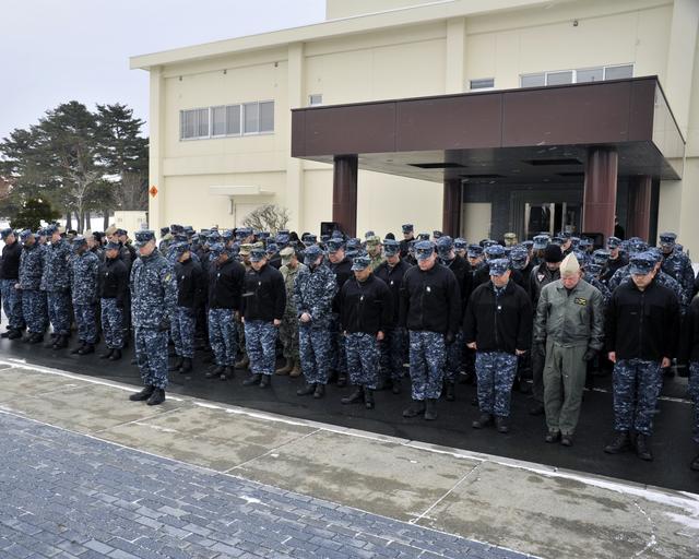 Keywords: Great East Japan Earthquake Remembrance at NAF Misawa - March 11, 2011 140311-N-ZI955-045.jpg en Naval Air Facility Misawa Commanding Officer Capt Chris Rodeman originally from Anderson Ind leads Navy Misawa personnel in a moment of silence during a remembrance ceremony in honor of the third anniversary of the Great East Japan Earthquake Japan experienced a powerful 9 0-magnitude earthquake March 11 2011 which also triggered a massive tsunami that devastated Japan's eastern seaboard U S Navy photo by Mass Communication Specialist 3rd Class Erin Devenberg/Released <br>Unit Naval Air Facility Misawa 2014-03-11 Senior Chief Petty Officer Daniel Sanford https //www dvidshub net/image/1183378/great-east-japan-earthquake-remembrance-naf-misawa-march-11-2011 140311-N-ZI955-045 2014-03-10 21 53 MISAWA AOMORI JP PD-USGov-Military-Navy Naval Air Facility Misawa Images from DoD uploaded by Fæ |