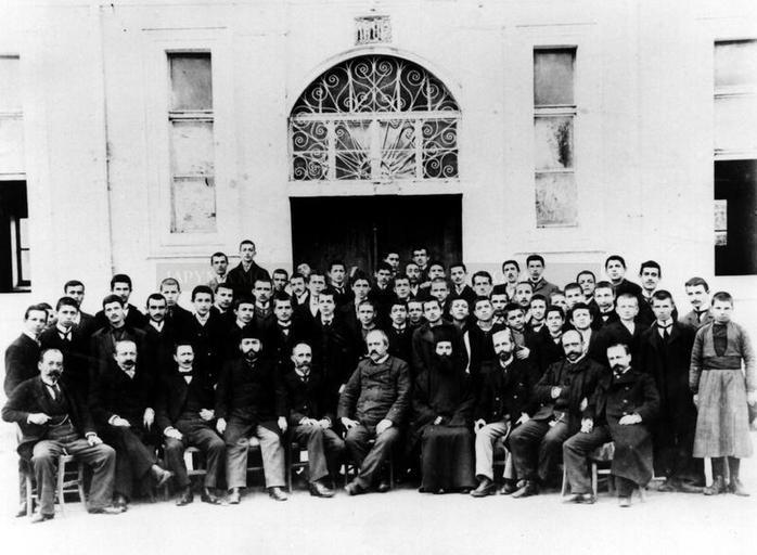 Keywords: Greek School Gymnasium of Monastir Bitola.JPG en Greek School Gymnasium of Monastir modern Bitola el Συλλογική αναμνηστική φωτογραφία η ο οία α εικονίζει το Ελληνικό Γυμνάσιο οναστηρίου Το Γυμνάσιο οναστηρίου άρχισε να λειτουργεί στα τέλη του δεκάτου ενάτου αιώνα και σε αυτό φοιτούσαν 200 ερί ου μαθητές α ό την όλη και α ό τη γειτονική εριοχή Το Γυμνάσιο οναστηρίου αντικατέστησε το ροϋ άρχον Ημιγυμνάσιο της όλης το ο οίο λειτουργούσε ως Λύκειο α ό το 1838 και στεγάστηκε σε νεόδμητο μεγαλο ρε ές κτιριακό συγκρότημα ου κτίστηκε με την οικονομική συνδρομή των οναστηριωτών Τα ρογράμματα και οι σ ουδές του είχαν υψηλότατη μορφωτική και εκ αιδευτική στάθμη και ήταν ένα α ό τα ε τά ιο αλιά και ονομαστά Γυμνάσια του Αλύτρωτου Ελληνισμού α ό το Δυρράχιο μέχρι την Τρα εζούντα http //www imma edu gr/imma/dbs/Artifacts/index html lq CE A0 CE 93 CE 94 CE 9C start 617 show 1 Author Late 19th-early 20th Century Anonymous-EU Macedonia region Macedonia Greece Historical images of Bitola Schools in Bitola |
