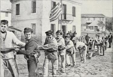 Keywords: Greek soldiers in Salagora, Arta, Greece, 1897.jpg el A οβίβαση Ελλήνων στρατιωτών στη Σαλαώρα και μεταφορά ενός τουρκικού κανονιού κατά τη διάρκεια του Ελληνοτουρκικού ολέμου του 1897 Η ελληνική σημαία ου βλέ ουμε ήταν η μοναδική ου ανέβηκε σε τουρκικό κτίριο σε όλη τη διάρκεια του ολέμου 1897-04-08 ebay com author other versions PD-old-70-1923 Hellenic Army in the Balkan Wars Uploaded with UploadWizard |