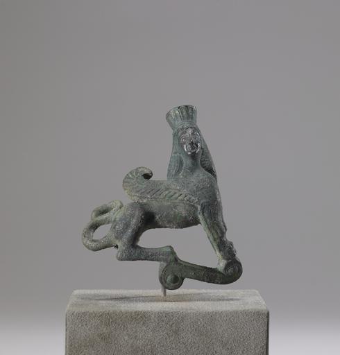 Keywords: Greek - Sphinx Vase Ornament - Walters 541078.jpg Locri Epizephyrii present-day Gerace Italy a particularly active bronze-working center specialized in richly ornamental attachments for vessels and utensils This vase attachment is in the form of a sphinx a mythical creature with the body of a lion wings of a bird and head of a woman She wears a high polos or ritual crown century 6 BC Archaic bronze cm 8 2 7 2 5 accession number 54 1078 14212 Lambros Collection date and mode of acquisition unknown Jean P Lambros and Giovanni Dattari Sale Paris June 17-19 1912 lot 215 Henry Walters city Baltimore Walters Art Museum Henry Walters Acquired by Henry Walters place of origin Locri Epizephyrii present-day Gerace Italy Walters Art Museum license Ancient Greek sculptures in the Walters Art Museum Art from Greece Media contributed by the Walters Art Museum needs category review Ancient Greek statues of sphinx |