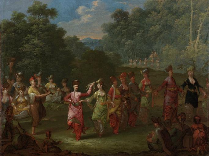 Keywords: Griekse mannen en vrouwen dansen de khorra Rijksmuseum SK-A-2009.jpeg accession number SK-A-2009 Jean Baptiste Vanmour credit line nl In een bosachtige omgeving dansen Griekse mannen en vrouwen de Khorra Links een doedelzakspeler Collection schilderijen; Vanmour serie ; Jean Baptiste Vanmour 1671-1737 olieverf op doek ca 1720-1737 drager Height cm 44 5 drager Width cm 58 exhibition history 2009-2010 Jean Baptiste Vanmour Peintre de la Sublime Porte 1671-1737 Valenciennes 2003-2003 De Ambassadeur de Sultan and de Kunstenaar op audiëntie in Istanbul Amsterdam Institution Rijksmuseum Technique oil canvas object history Acquisition 1902 object type Potential derivatives exist check http //commons wikimedia org/w/index php search Rijksmuseum+SK-A-2009 this search PD-US PD-old Data and photography rights All data and all images made available through the API are either in the public domain or are subject to a CC0 license https //www rijksmuseum nl/en/api/terms-and-conditions-of-use cc-zero place of creation http //www rijksmuseum nl/collectie/SK-A-2009 Griekse mannen en vrouwen dansen de khorra Q17326787 Uploaded with GWToolset Griekse mannen en vrouwen dansen de khorra Rijksmuseum SK-A-2009 http //www rijksmuseum nl/media/assets/SK-A-2009 Images uploaded by Fæ Images from the Rijksmuseum Turkish paintings in the Rijksmuseum Amsterdam Paintings by Jean Baptiste Vanmour |