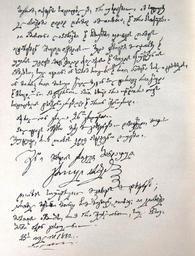 Keywords: Grigol Orbeliani MSS.jpg en A letter by Prince Grigol Orbeliani 1804-1883 century 19 მაღრაძე ელგუჯა გრიგ ლ რბელია ი ბი გრ რ მა ი; წერილები - თბ საბჭ საქართველ 1989 unknown photographer PD-Old Grigol Orbeliani Manuscript letters written messages Mkhedruli historical documents |