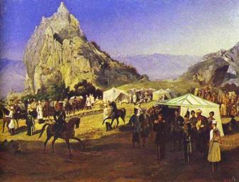 Keywords: Grigory Gagarin. Kakheti, Karagachi, Nizhegorod Dragoon Regiment military leaders. 1841.jpg Artwork Creator Grigory Gagarin ka კახეთი ყარაგაჩი იჟეგ რ დის დრაგუ თა პ ლკის მხედართმთავრები 1841 Oil on canvas Institution Russian Museum Saint Petersburg accession number object history credit line http //www join2day com/abc/G/gagarin/gagarin6 JPG www join2day com Source of the first version http //burusi files wordpress com/2009/06/e18399e18390e183aee18394e18397e18398-e183a7e18390e183a0e18390e18392e18390e183a9e18398-e1839ce18398e1839fe18394e18392e1839de183a0 jpg burusi files wordpress com PD-Art-100 http //klp pl/admin-malarstwo/images/g_gagarin_gagarin/g_gagarin_gagarin6 html Olga's Gallery Source of the first version http //burusi wordpress com/2009/06/15/გრიგ ლ-გაგარი ი-საქართვ/ burusi wordpress com Grigory Gagarin 1841 paintings from Russia Karagachi Kakheti in art History of Kakheti 19th-century oil on canvas paintings in Russia 19th-century paintings in the Russian Museum Paintings of mountains Tents in art Oil paintings of landscapes 1840s landscape paintings 1840s paintings from Russia 1840s paintings in Russia |