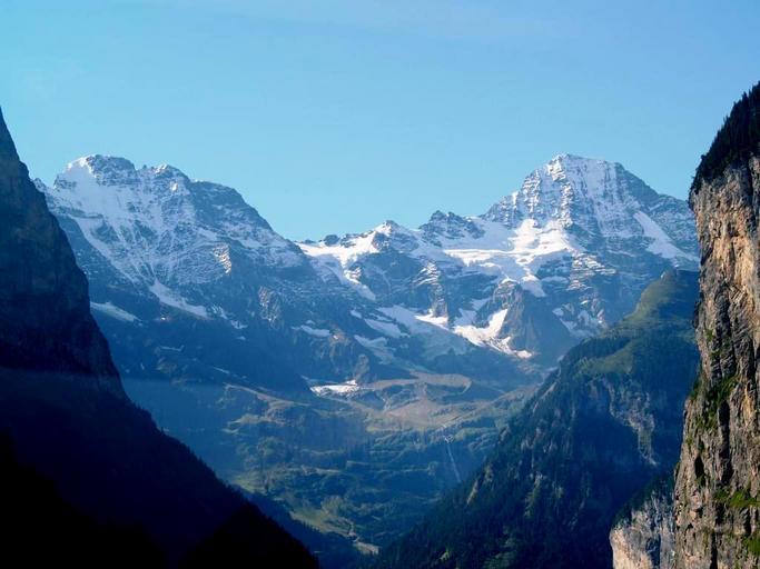 Keywords: Grosshorn.jpg en Grosshorn and Breithorn from Lauterbrunnental Switzerland Own Jackph 24 08 02008 Snow in Switzerland Grosshorn