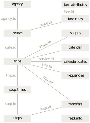 Keywords: GTFS class diagram.svg en Class diagram of the GTFS specification Originally published in http //dbis eprints uni-ulm de/1054/ Opening Public Transit Data in Germany and re-uploaded to Commons by the author 2014-05-23 own -stk other versions cc-zero Class diagrams General Transit Feed Specification |