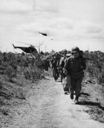 Keywords: monochrome blackandwhite outdoor black and white NH 97145. Republic of Korea Marines. "Aerial Convoy Drops off 'KMCs' -- As a column of Korean Marines move down a trail, three 1st Marine Aircraft Wing helicopters (one appearing as a dot in the distance), brings in new loads of 'KMCs'." Photograph and caption were released by Commander Naval Forces, Far East, under date of 20 April 1952. Helicopters are Sikorsky HRS types, of U.S. Marine squadron HR-69. Official U.S. Marine Corps Photograph, from the "All Hands" collection at the Naval History and Heritage Command. NH 97145. Republic of Korea Marines. "Aerial Convoy Drops off 'KMCs' -- As a column of Korean Marines move down a trail, three 1st Marine Aircraft Wing helicopters (one appearing as a dot in the distance), brings in new loads of 'KMCs'." Photograph and caption were released by Commander Naval Forces, Far East, under date of 20 April 1952. Helicopters are Sikorsky HRS types, of U.S. Marine squadron HR-69. Official U.S. Marine Corps Photograph, from the "All Hands" collection at the Naval History and Heritage Command. |
