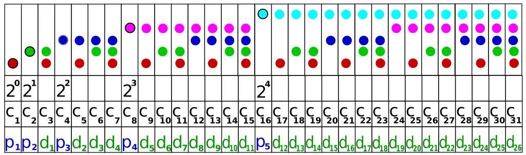 Keywords: Hamming code parity bit position 6.svg binary code; Hamming-Code Own 2007-11 RosarioVanTulpe Purge Hamming codes