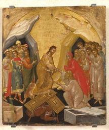 Keywords: Harrowing of hell by M.Bathas (16th c.).jpg Η Εις Άδου Κάθοδος τέλη 16ου αιώνα 42 5x48 5εκ άρκος αθάς 1498-1578 Η εικόνα αυτή ακολουθεί το εικονογραφικό ρότυ ο της εικόνας αρ 6 του ουσείου Εδώ ο Χριστός δεν εριβάλλεται α ό δόξα και δεν υ άρχουν οι άγγελοι με τα σύμβολα του Πάθους Ο Αδάμ γονατίζει ε άνω στο σκέ ασμα της σαρκοφάγου ου είναι το οθετημένο διαγώνια ο Ιωάννης ο Πρόδρομος δείχνει τον Χριστό με μία θεατρική κίνηση και ο αλυσσοδεμένος Άδης βγάζει φωτιές α ό το στόμα του http //eib xanthi ilsp gr/gr/icons asp late 16th century Markos Bathas 1498-1578 PD-old Files uploaded by Shakko from various sources 16th-century icons of Greece Icons of the harrowing of hell |