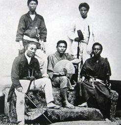Keywords: Haruhi(Officers).JPG Officers of the Japanese warship Kasuga 1869 photograph Third-class officer Togo Heihachiro later Admiral Togo is dressed in white top right ja 春日丸の乗員 PD-Japan-oldphoto Moved from en 2004 Nov 13 Black and white photographs Kasuga ship 1862 Togo Heihachiro Togo Heihachiro |