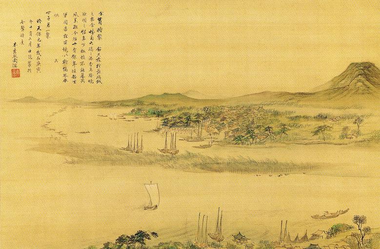 Haruki Nanmei Nagashima Kuwana Landscape 春木南溟筆 長島桑名真景図.jpg (2426x1595)