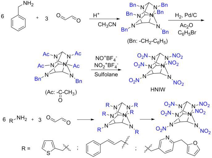 Keywords: Hexanitrohexaazaisowurtzitane synthesis.png Synthesis of hexanitrohexaazaisowurtzitane HNIW Own 2008-07-05 puppy8800 Hexanitrohexaazaisowurtzitane synthesis svg Explosives Organic syntheses