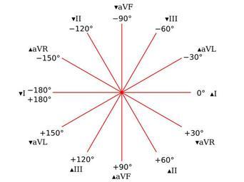 Keywords: Hexaxial reference system.svg The hexaxial reference system Self-made in Inkscape based on en Image Hexaxial jpg originally by MoodyGroove 2007-08-27 User MoodyGroove User Mysid ECG principle Electrophysiology Medical tests