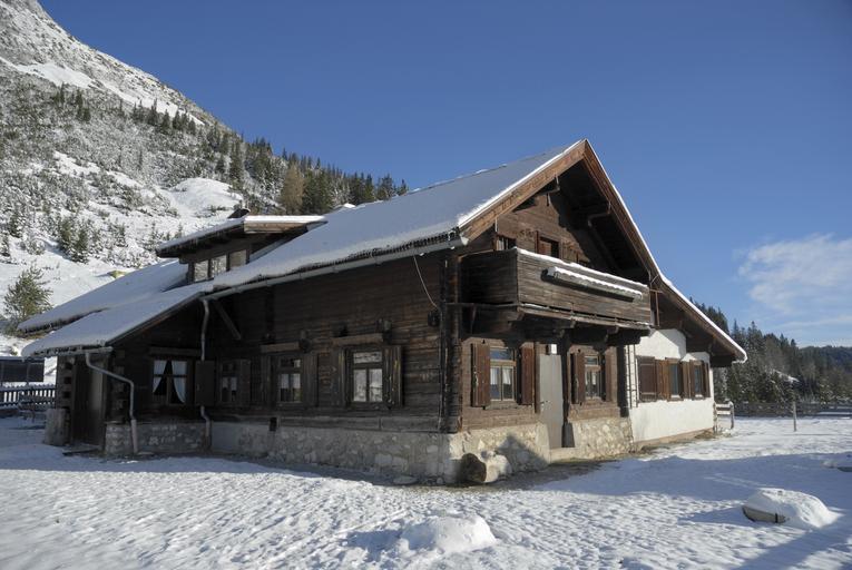 Keywords: Tuxer Alpen Hinterhornalm mountain inn Karwendel snow winter