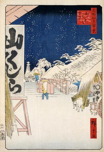 Keywords: Hiroshige, Bikuni bridge in snow, Meisho Edo Hyakkei 114.jpg ja 名 江戸百景 第114景 びくにはし雪中 en Bikunibashi setchū Bikuni bridge in snow Ukiyo-e print shows a porter walking in ankle-deep snow at the approach to the Bikuni bridge No 114 in the series Meisho Yedo Hiakkei One Hundred Famous Views of Edo Location is near Ginza 1-chōme station LOC-image jpd 01375 Call number LC-DIG-jpd-02964 Restoration by trialsanderrors http //www flickr com/photos/trialsanderrors/3752294748/ Hiroshige Bikuni bridge in snow 1858 1858 Creator Hiroshige Utagawa Or possibly his student Hiroshige IIhttp //www brooklynmuseum org/opencollection/objects/121726/Bikuni_Bridge_in_Snow_No _114_from_One_Hundred_Famous_Views_of_Edo <gallery> File 100 views edo 114 jpg </gallery> 35 40 33 30 N 139 45 59 20 E region JP_heading SWbS_dim 430 PD-Japan Utagawa Hiroshige II Winter in Japan Ukiyo-e Ginza One Hundred Famous Views of Edo 114 |