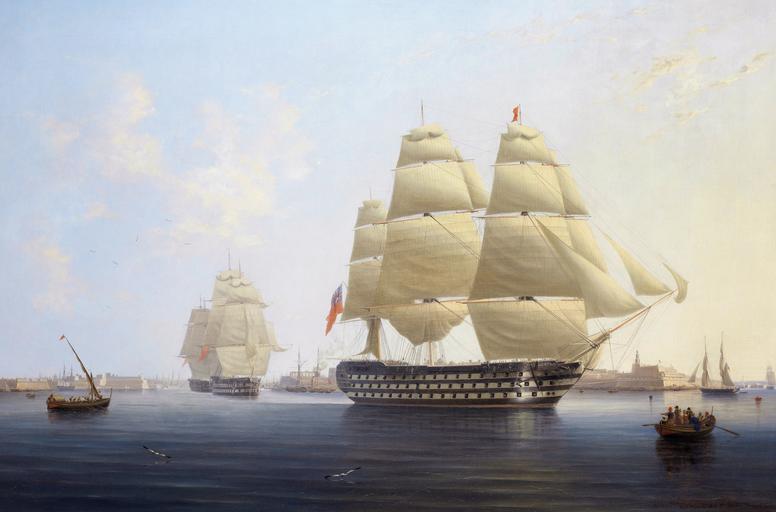 Keywords: HMS Queen, by Robert Strickland Thomas.jpg en HMS Queen Flagship of Vice Admiral Sir Edward Rich Owen Commander-in-Chief of the Mediterranean fleet leaving Malta oil on canvas 70 x 105 cm signed b r R S Thomas R N px 1842 1842 http //www bonhams com/auctions/20485/lot/32/ Bonhams Creator Robert Strickland Thomas PD-Old PD-US Uploaded with UploadWizard HMS Queen ship 1839 Robert Strickland Thomas 1842 Historical images of Malta Malta in history paintings Images from Bonhams |