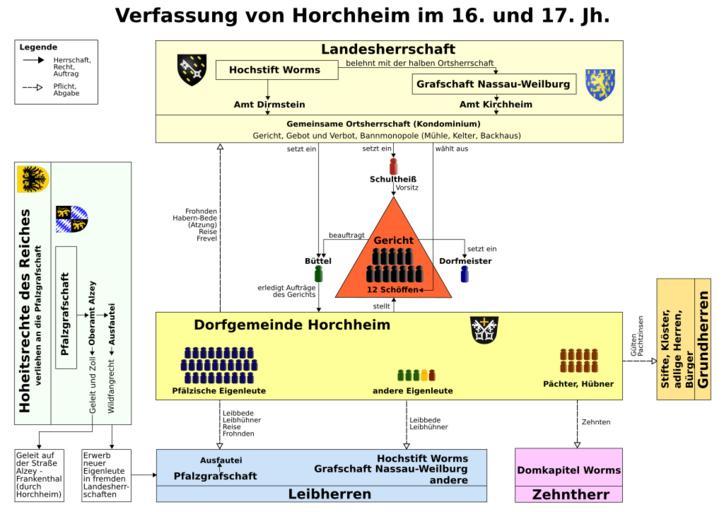 Keywords: Horchheim Verfassung im 16. und 17. Jh.svg en Constitution of Horchheim near Worms in the 16th and 17th century de Verfassung von Horchheim bei Worms im 16 und 17 Jahrhundert own PMScigne 2014-10-09 Quellen 1 Alois Seiler Das Weistum der Dörfer Roxheim Bobenheim Mörsch Horchheim Weinsheim und Wiesoppenheim in Der Wormsgau Bd 2 Heft 5 1941 S 297-300 2 Hermann Schmitt Geschichte von Horchheim Weinsheim und Wies-Oppenheim Worms 1910 3 Sigrid Schmitt Territorialstaat und Gemeinde im kurpfälzischen Oberamt Alzey vom 14 bis zum Anfang des 17 Jh Stuttgart 1992 4 Rudolf Fendler Geleitstraßen und Postlinien vor der Französischen Revolution in Willi Alter Hg Pfalzatlas Textband II 1972 S 703-732 Worms-Horchheim Cc-zero |