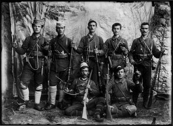 Keywords: IMARO-band-Kastoria-Papazoglou.jpg Чета на В ОРО от Косту ско Bulgarian IMARO band in the region of Kastoria Λεωνίδας Πα άζογλου Φωτογραφικά ορτραίτα α ό την Καστοριά και την εριοχή της την ερίοδο του ακεδονικού Αγώνα ουσείο Φωτογραφίας Θεσσαλονίκης 2004 date probably summer 1903 terminus ante quem September 3 1903 Leonidas Papazoglou 1872 - 1918 PD-art IMARO Revolutionaries from Bulgaria Pictures by Leonidas Papazoglou Historical images of the Kastoria Prefecture Mannlicher M1895 Mannlicher M1888 Mauser C/96 |