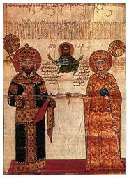 Keywords: Ο Αλέξιος Γ’ Μεγάλος Κομνηνός 1349-1390 με τη σύζυγο του Θεοδώρα σε μικρογραφία του κτιτορικού χρυσόβουλλου της Μονής Διονυσίου του.jpg el Ο Αλέξιος Γ εγάλος Κομνηνός 1349-1390 με τη σύζυγο του Θεοδώρα σε μικρογραφία του κτιτορικού χρυσόβουλλου της ονής Διονυσίου του 1349 1350 http //anemourion blogspot bg/search/label/ CE 9C CE 91 CE 9A CE 95 CE 94 CE 9F CE 9D CE 99 CE 91 20 CE 91 CE A1 CE A7 CE 91 CE 99 CE 9F CE 9B CE 9F CE 93 CE 99 CE 91- CE A0 CE 9F CE 9B CE 99 CE A4 CE 99 CE A3 CE 9C CE 9F CE A3 author other versions Custom license marker 2016 07 04 PD-old Empire of Trebizond Medieval miniatures of Byzantine emperors 14th-century Byzantine illuminated manuscripts Ktitor Moni Dionysiou Athos Alexios III Megas Komnenos |