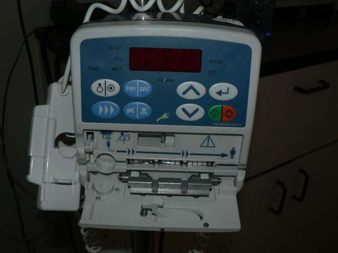 Keywords: Infuuspomp.jpg en infusion pump Own Harmid <pre> <pre> 2 x T 63 mA 20 x 5mm 250 V </pre> <pre> ALARIS Medical UK Ltd Basingstoke RG22 4BS UK </pre> <pre> GB British Patent No 2083560 2083561 2083563 IE Patent No D13001 D13003 D13007 </pre> <pre> Alarmsignalen en waarschuwingen Attn 2 minuten pauze-alarm HOOG PRES Occlusie onder de pomp LCHT OCCL Occlusie boven de pomp/ lucht in de lijn DEUR Deur open DRUP SENS Aansluitfout flowsensor / Onregelmatige infusie waargenomen END TIV limiet bereikt LAA BAT Bijna lege batterij ERR Interne fout </pre> </pre> Intravenous therapy |