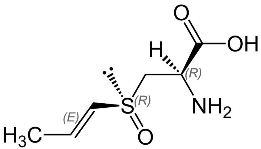 Keywords: Isoalliin Structural Formula V.1.svg Isoalliin_Structural_Formula with stereochemical descriptors own 2013-08-17 Jü Cc-zero Alpha-amino acids