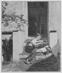 Keywords: Jahrhundertausstellung 1906 KatNr. 1892.jpg Artwork Creator Ferdinand Georg Waldmüller Vor der Tür Oil Canvas cm 56 40 Städtischer Besitz Kassel lt Quelle Vorstand der Deutschen Jahrhundertausstellung Herausgeber žKatalog zur Ausstellung deutscher Kunst aus der Zeit von 1775 “1875 in der Königlichen Nationalgalerie Berlin Verlag F Bruckmann AG München 1906 2 Bände ; self scanned from own book 1862 PD-old-70-1923 Other versions Ferdinand Georg Waldmüller in Jahrhundertausstellung deutscher Kunst 1906 Jahrhundertausstellung deutscher Kunst 1906 ImageNote 1 11 8 795 955 823 978 2 Lehmgelbe mit Orange durchsetzte Erde deren Ton in den Treppenstufen vorkommt und sehr verdünnt in dem gelbweiß grauen Haus mitwirkt Der Schatten in der braungefaßten Türöffnung schwarzgrau Die Mädchen in rosa weißen und namentlich blauen Tönen Die Kränze in Kornblumenblau “ Bez unten rechts neben dem Haus braun Waldmüller 1862 ImageNoteEnd 1 |