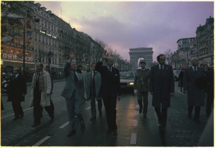 Keywords: Jimmy Carter and President Giscard d'Estaing walk down the Champs-Elysees in Paris. - NARA - 177444.tif Scope and content General notes 177444 Local identifier President 1977-1981 Carter White House Staff Photographers 01/20/1977 - 01/20/1981 Jimmy Carter Library NLJC 441 Freedom Parkway Atlanta GA 30307-1498 1978-01-05 Record group Collection JC-WHSP Carter White House Photographs Collection 01/20/1977 - 01/22/1981 Record group ARC 1120 Carter White House Photographs Presidential compiled 01/20/1977 - 01/22/1981 Series ARC 173341 File unit Leaving Arc de Triumph en route to Palais des Congress for speech 01/04/1978 - 01/04/1978 File unit ARC 177443 Variant control numbers NAIL Control Number NLC-WHSP-C-03873-16A yes Other versions NARA-cooperation PD-USGov Avenue des Champs-Élysées in the 1970s Jimmy Carter and Valéry Giscard d'Estaing 1978 events in Paris January 1978 in France |
