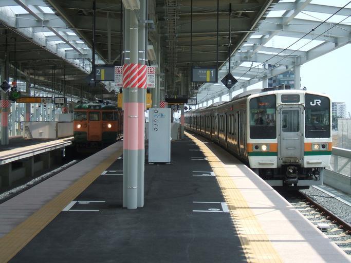 Keywords: JNR 115 Series and JNR 211 Series at Isesaki.jpg 115 Series and JNR 211 Series at Isezaki Station 伊勢崎駅に 車する国鉄115系と国鉄211系電車 From my Pictures Breakover 2010-07-31 JNR 211 JR East JNR 115 JR East Isesaki Station